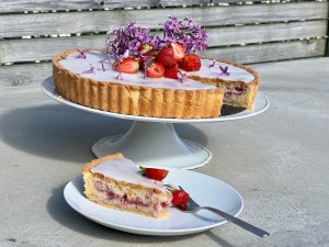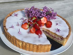 Mazarintårta med jordgubbar och fläder