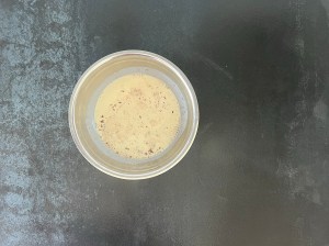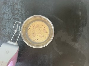 Jag börjar med kladdkakan, samma bas som i alla mina toppade kladdkakor. Smör och socker vispas samman, smör smälts och vispas ned i äggsmeten. De torra ingredienserna blandas i en skål och vispas ned i smeten. Kläm ett bakplåtspapper i botten på en form, smörj kanterna med smör och ”bröa” den med kakao. Baka sedan av i ugnen och låt svalna innan den dekoreras med ganachen.