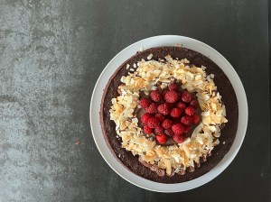 Gott på riktigt är ett uttryck jag använder till och från, den här kombon fick snabbt den stämpeln. Kladdig kaka, len ganache, syrliga hallon, krispig kokos och lättvispad grädde till, för att balansera.