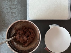 Väg sedan upp smeten i lika stora bitar och rulla dem. Jag släpper mina från cirka tjugo centimeters höjd ned på ett bakplåtspapper, så att de blir platta i botten. Kyler dem sedan så att smöret stelnar.