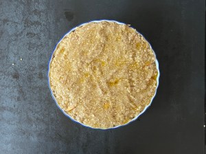Starkt tips är att sätta en plåt under formen i ugnen, ifall den bubblar över lite så är det lättare att ta ut och diska plåten än att städa ugnen