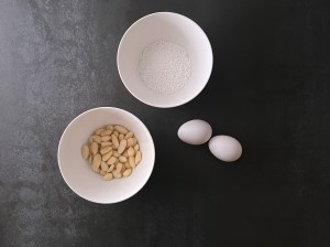 Sen plastar jag degen och kyler den i ca 30min innan jag tar fram den för att kavla ut den. Medans den kyler så hackar jag mandel och blandar med pärlsocker och markerar äggulor i en skål.