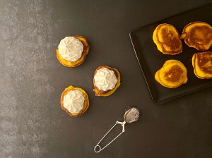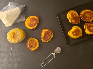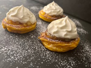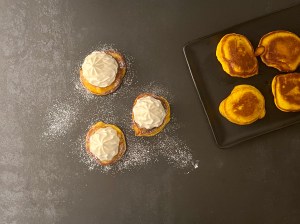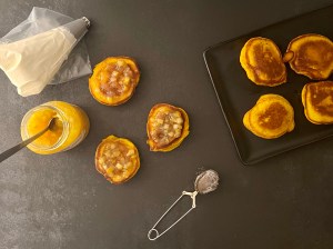 Jag valde att servera med apelsinmarmelad och vispad grädde. För att få dem lite festligare så bygger jag dem så här och bjuder på dem färdiga.