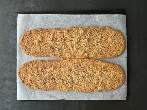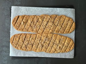 När de kommer ur ugnen låter jag dem svalna en kort stund på plåten innan jag skär dem.