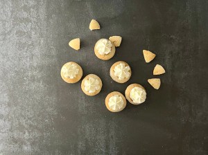 Baka i ca 8-10min. De ska bli ljusa och lätt gyllene i färgen och kännas ”lätta” att lyfta. Tid beror på ugnen och kan variera lite (i min ugn tog det 10min)