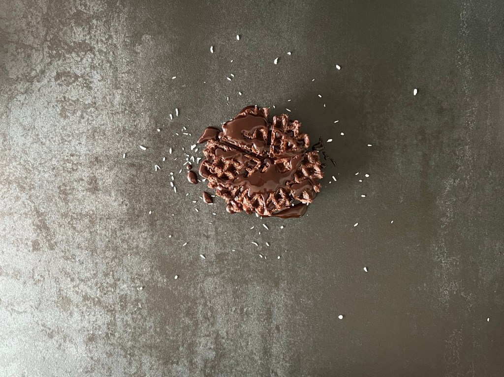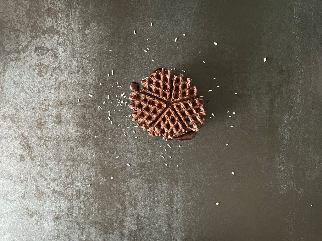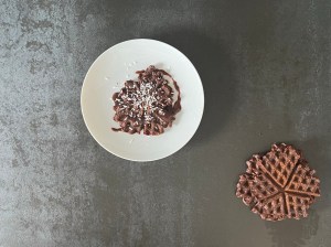 Våffeldagen kom smygande och årligt släktkalas för att fira dottern stod på schemat. I år ville jag göra något nytt, som komplement i våffelutbudet. Har ni följt bloggen så har ni nog kunnat ana min lilla kärlek för kärleksmums och det slog mig att en Kärleksmumsvåffla vore så jäkla gott, här har ni resultatet. En frasig chokladvåffla med kärleksmumsglasyr och kokos.