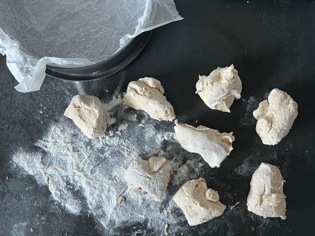 8. Dela degen i 8st, lika stora bitar, jag kontrollväger mina så att alla ligger runt 110g styck