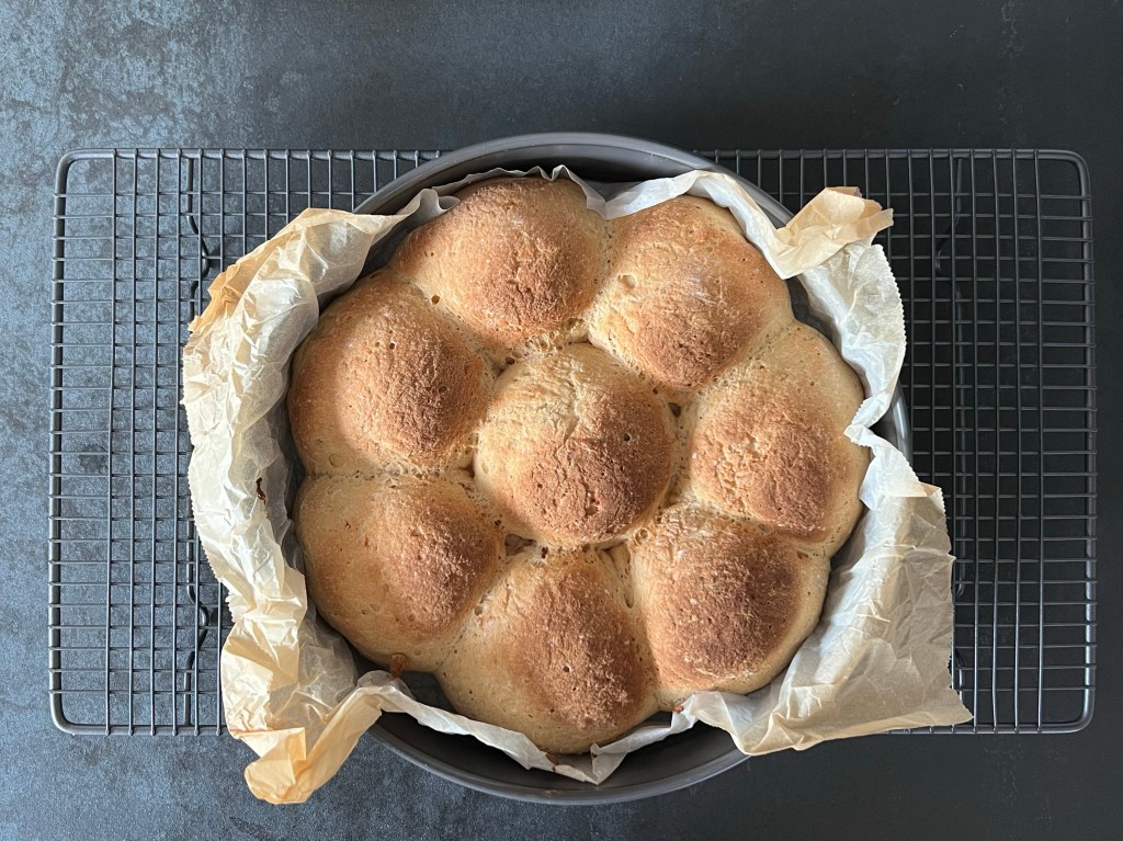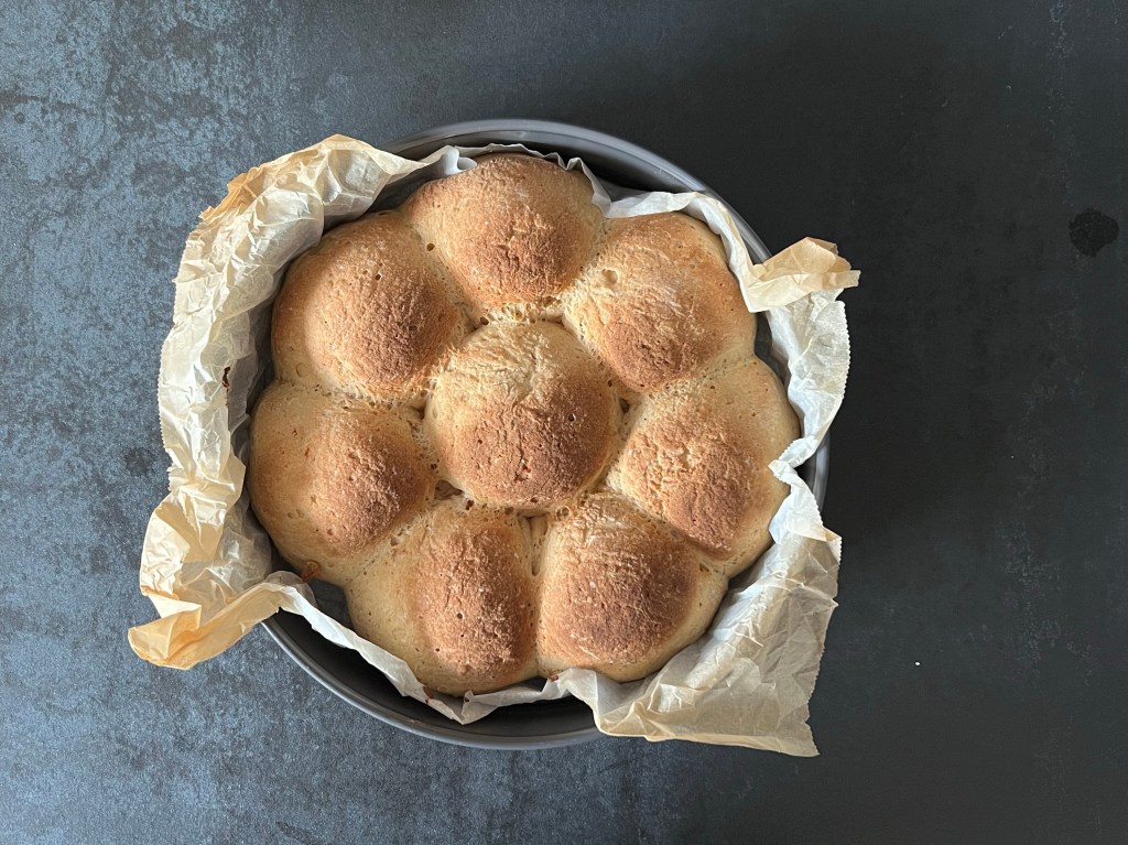 2. jag provade kalljäsa brödet i bunken över natten, bakade ut bullarna och ner i formen direkt på morgonen och lät det stå och jästa 45min i rumstemperatur. Blev otroligt saftigt med luftbubblor i brödet