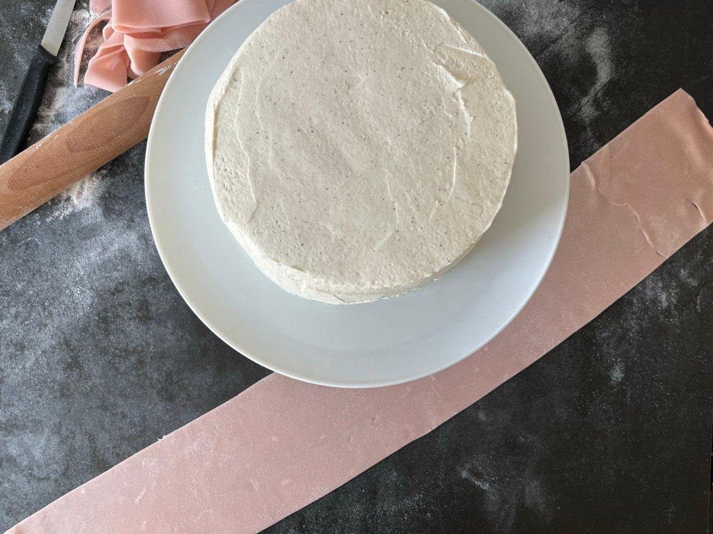 För snyggast marsipanöverhäng, mät tårtan och skär marsipanen 2-3cm extra