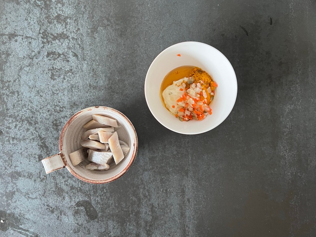 Currysill. Tänk er en dansk remouladsås, med curry, lite sötare och så fylld med sill, en av mina favoriter som jag ofta kommer tillbaka till. Både privat men även på jobbet.