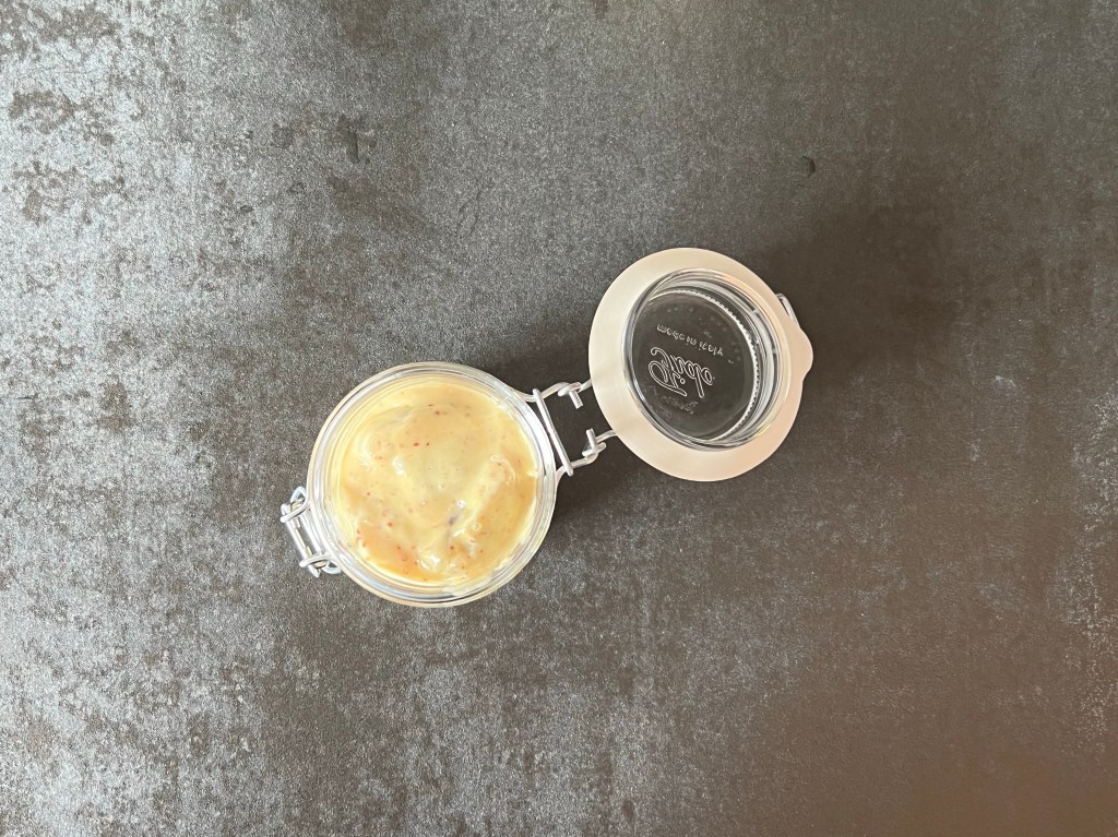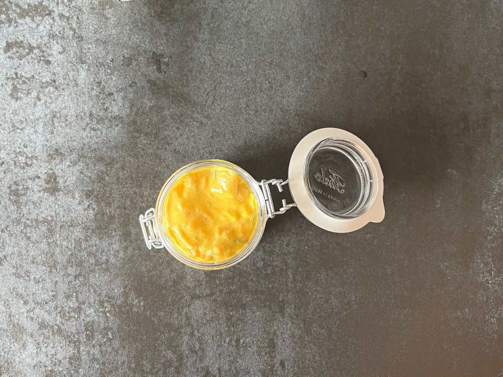 3. Blanda majonnäs, pickle, sirap, curry och gurkmeja