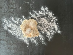6. Ta upp degen på lätt mjölad bänk, pudra lite mjöl över