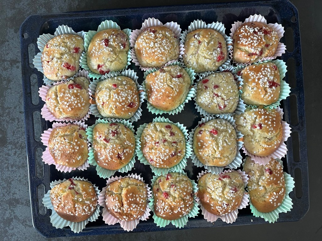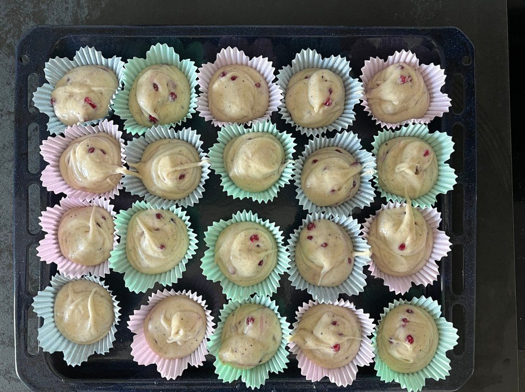 Jag var på jakt efter Frias hallon och kardemummamuffins men hittade inga i butiken. Kom hem och kände att jag skulle baka en egen variant, insåg snabbt att jag inte hade hallon i frysen men hittade lingon. Tänkte att det måste väl vara minst lika gott, och det var det verkligen. Vilken magisk kombo med kardemumman och syran i lingonen.