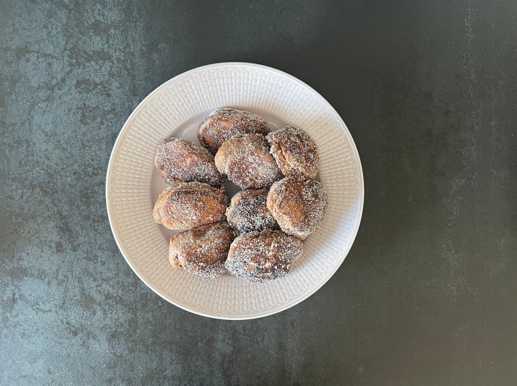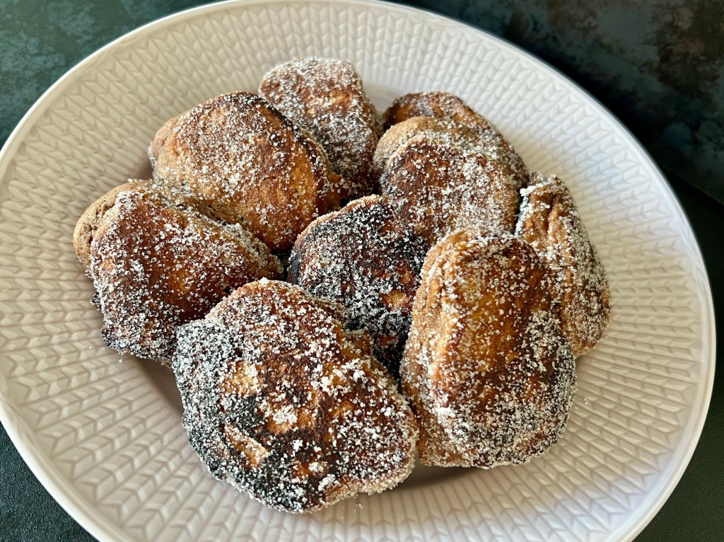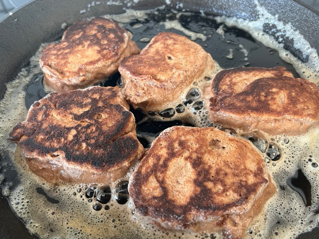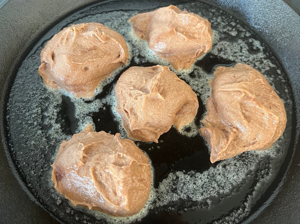 Värmer en stekpanna till strax över medelvärme, smälter smör eller flytande smör & rapsolja, klickar i matskedsstora smetklicka, plattar lätt till dem så att de inte blir för tjocka, då är de svåra att få genomgräddade utan att de blir brända. Är man osäker på om de är färdiga så ta en provsticka och kolla om de är kladdiga eller torra. När de är färdiga vänder jag dem i strösocker innan servering