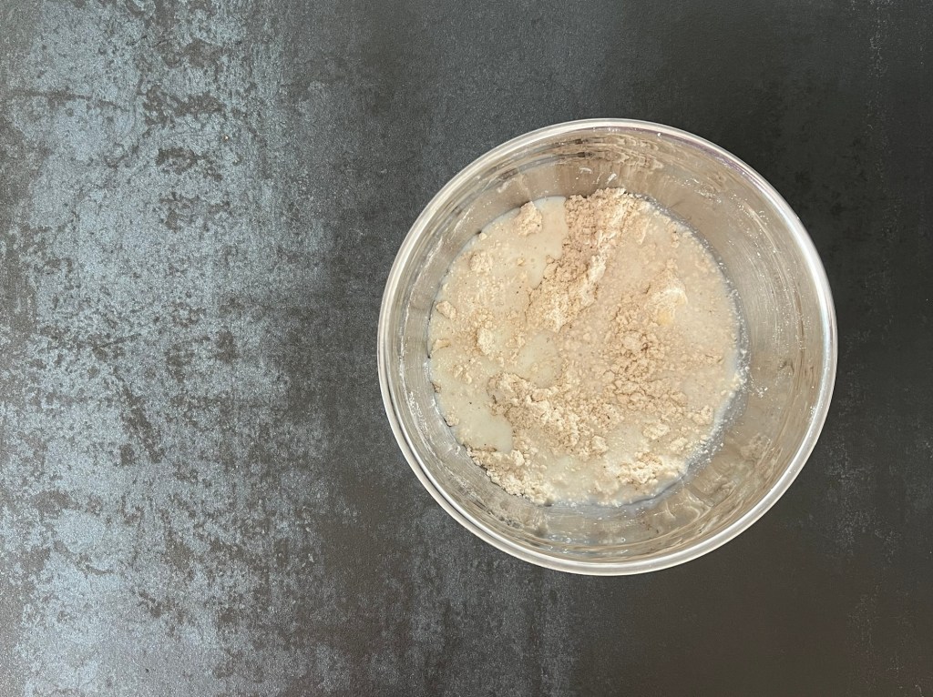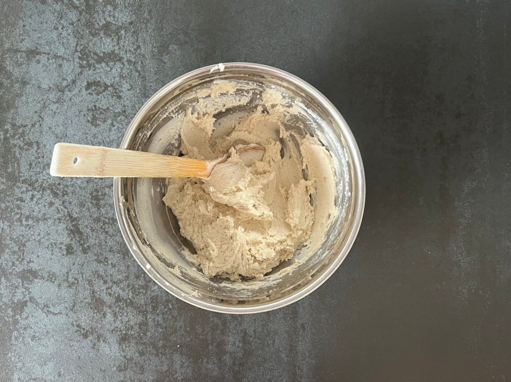 Delar upp degen i 2 lika stora bitar som jag jämnar till och plattar ut till två jämna runda kakor, ca 3cm höga. Som jag sen bakar av i ugnen.