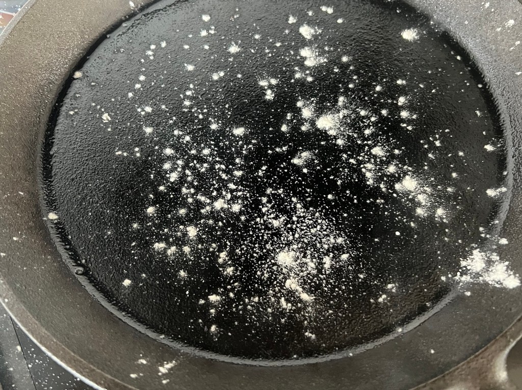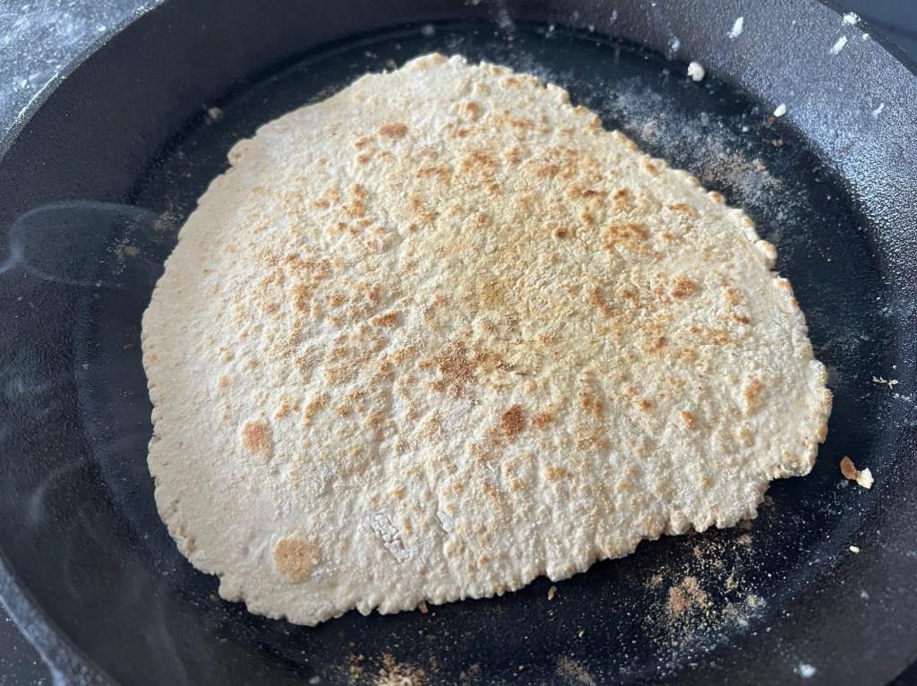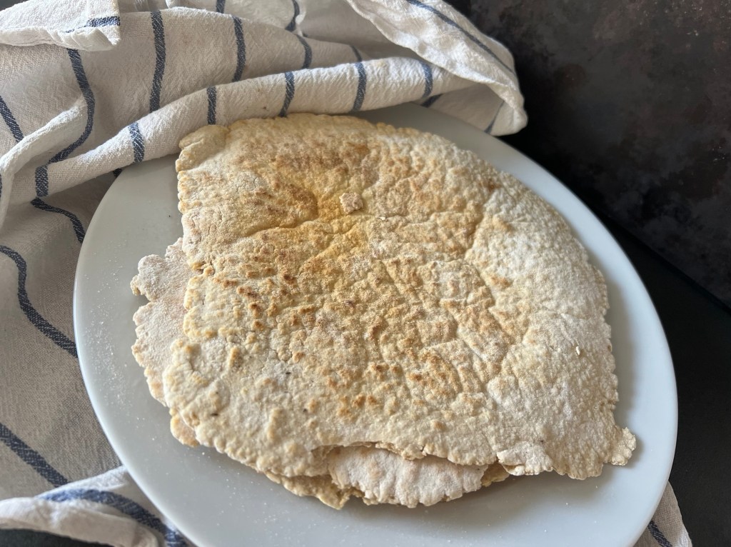 Plattorna steker jag i torr panna på medelvärme, pudrar pannan med lite mjöl innan jag steker. Vänder efter ca 1,5min per sida. de ska får gyllen bruna fläckar. Färdiggräddade förvarar jag dem i en kökshandduk innan servering. Om mjölet börjar ryka mycket och bränna så diska pannan efter du stekt två stycken och fortsätt sen, så gjorde jag.