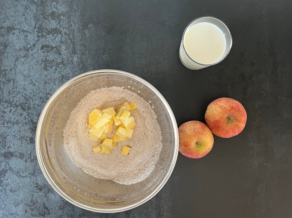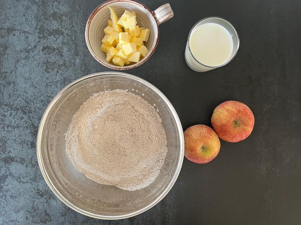 Har ni nån gång funderat på ett bröd som smakar äppelkaka? I såna fall har ni lösningen här, det smakar verkligen mjuk äppelkaka. Gott till brunchen eller som mellis. Ganska enkelt så är det en lätt sötad scones med rivet äpple och kryddad med kanel. Extra trevligt att baka med svenska äpplen som vi verkligen har i överflöd på hösten och vintern.