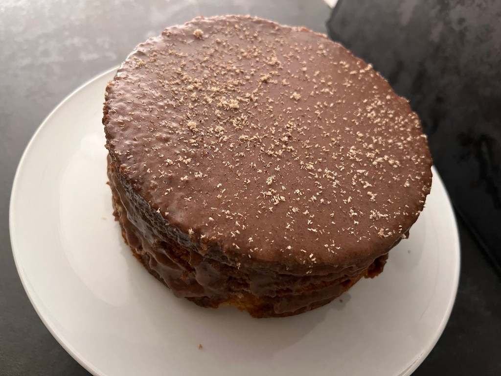 Jag låter sen glasyren och kakan sätta sig innan jag serverar