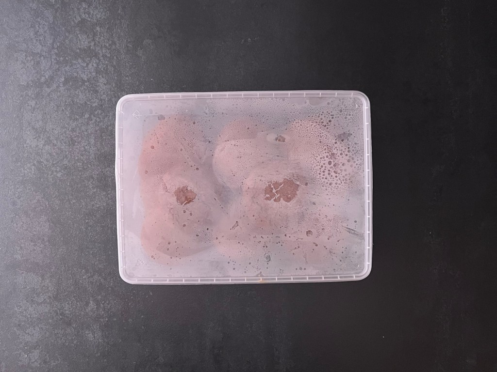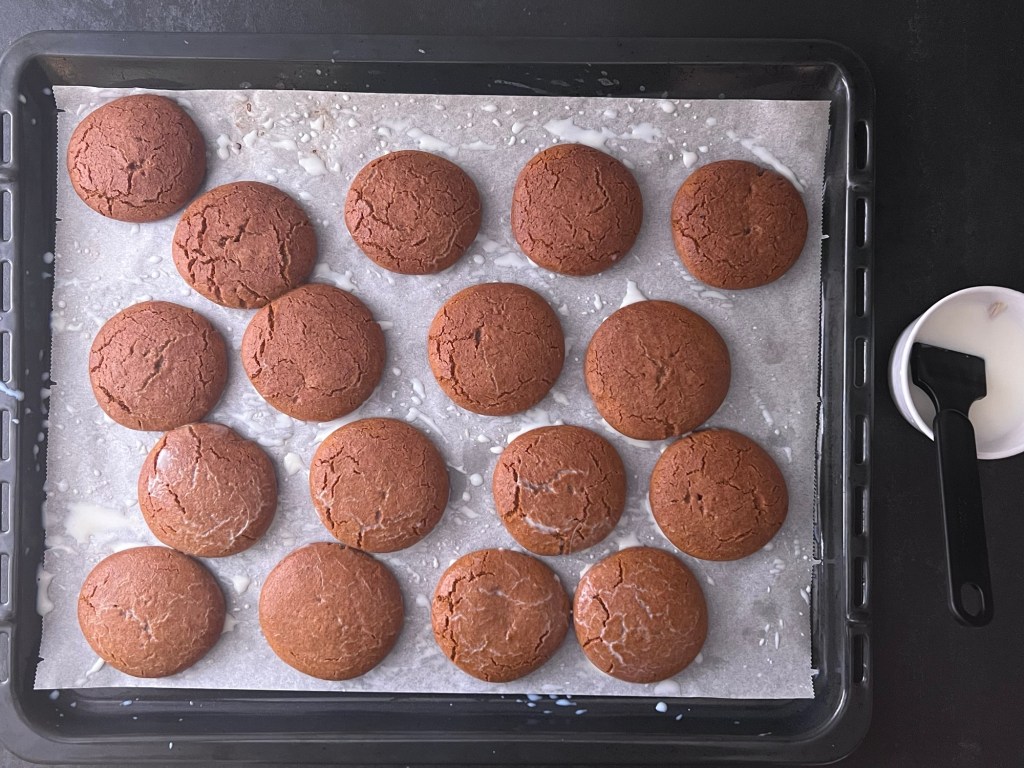 När de kommer ur ugnen så penslar jag dem direkt med mjölk och lägger dem i en burk som jag stänger locket på. Kondensen och fukten de suger upp gör dem väldigt trevliga i konsistensen och de håller sig goda längre.