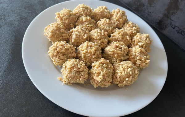 Jag utgick från en chokladboll, och funderade på hur man godast kan göra en variant som innehåller jordnötssmör och sen rullas i hackade jordnötter. Det blev väldigt gott, och var […]