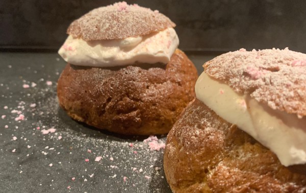 Smaka på den kombon i tanken.Pepparkakskryddad semlebulle, hasselnötsmassa som blandas med inkråm från bullarna och rå grädde. Grädden vispas och smaksätts med krossad polkagris. På locket pudras krossad polkagris och […]